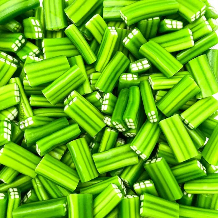 Discover the fruity intensity of Dulceplus Apple Bricks . These rectangular-shaped jelly candies combine a soft, creamy center with a sweet, slightly tangy coating. Their bright, refreshing apple flavor makes them a must-have treat for young and old alike.