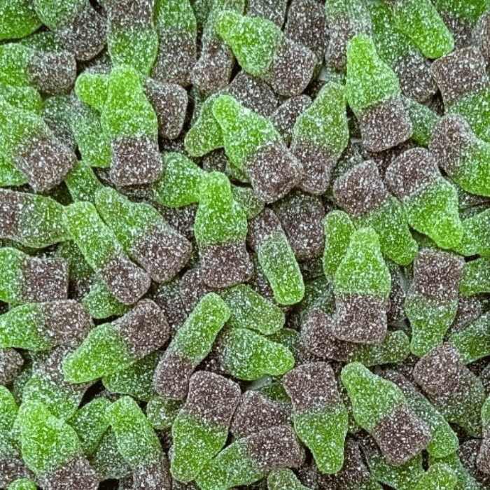 Jake 's Sour Cola Mini Bottles Candy is the perfect mix of nostalgia and thrills: an iconic little bottle shape, a delicious sweet cola taste, and above all a tangy coating that instantly awakens the taste buds.