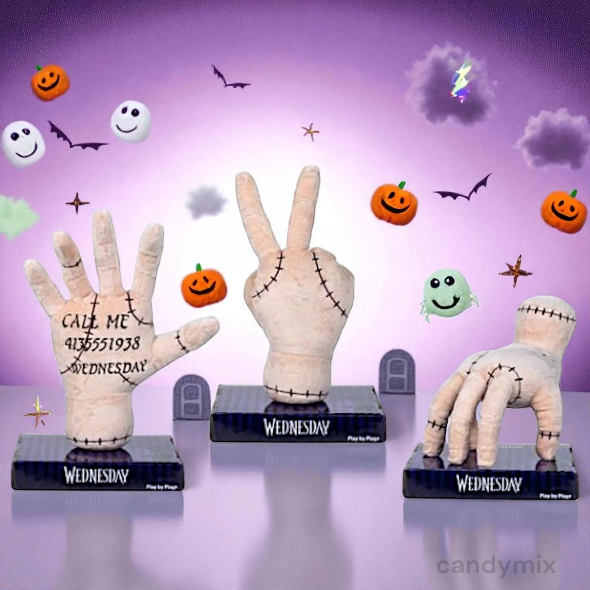 Impossible de passer à côté d’elle ! Directement inspirée de la série culte Wednesday, cette main en peluche articulée rend hommage à la célèbre Thing (la Chose), avec ses cicatrices cousues, son look morbide et ses poses hilarantes. Elle trône fièrement sur son socle pour devenir la star de ta déco Halloween… ou de ta chambre toute l’année.